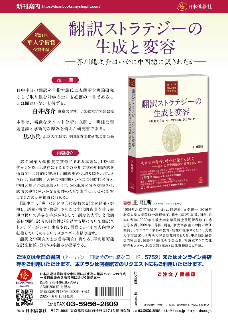 会社案内 ・ 段躍中のページ : 〒171-0021 東京都豊島区西池袋3-17-15湖南会館内 このウェブサイトの著作権は日本僑報社にあります。掲載された記事、写真の無断転載を禁じます。