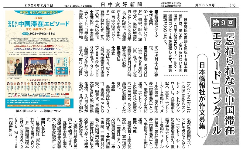 "日本と中国"を読む、「忘れられない中国滞在エピソード受賞作品集」 |