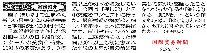 「寄贈の最新本紹介」日本僑報社 |